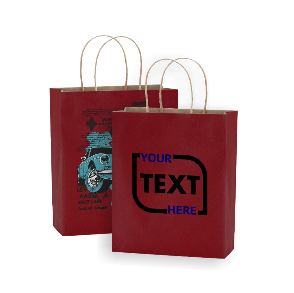 Sacoșă Kraft Rosu - 25x11x32 cm - din hârtie kraft, personalizată, cu mâner răsucit