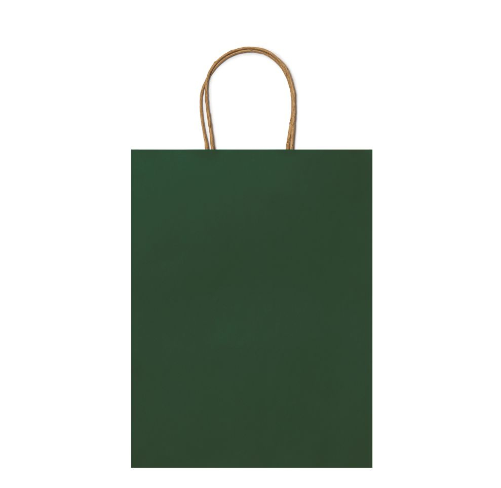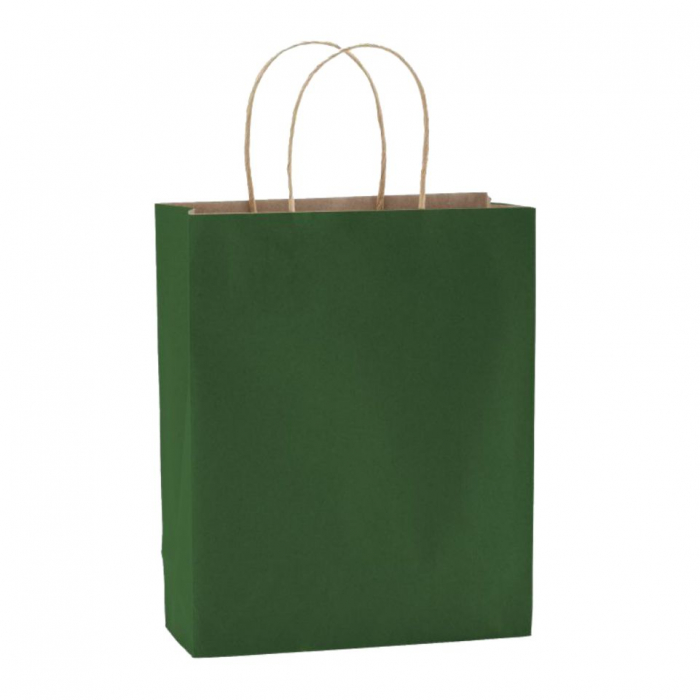 Sacoșă Kraft Verde - 25x11x32 cm - din hârtie kraft, neimprimată, cu mâner răsuci